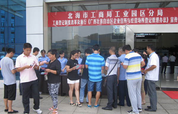 在中國電子北海產(chǎn)業(yè)園宣傳現(xiàn)場(chǎng),工業(yè)園區(qū)工商分局負(fù)責(zé)人表示,“從材料的申請(qǐng)?zhí)峤恢赁k證,承諾為期7個(gè)工作日辦好,根據(jù)園區(qū)的優(yōu)質(zhì)企業(yè),特事特辦,急事急辦,材料齊全的即可當(dāng)天頒證。”據(jù)了解,此次政策免去驗(yàn)資等手續(xù),不但節(jié)約時(shí)間,還降低企業(yè)成本。中國電子北海產(chǎn)業(yè)園園區(qū)企業(yè)北海高創(chuàng)電子信息孵化器有限公司領(lǐng)到了新版營業(yè)執(zhí)照,新版由以前的橫版改為豎版,沒有了實(shí)收資本一項(xiàng),并且左下角有一個(gè)二維碼,掃描成功后就能看到企業(yè)名稱、法人、注冊(cè)時(shí)間等登記信息。工作人員表示,“這次工商登記制度改革對(duì)于創(chuàng)業(yè)者最大的實(shí)惠就是注冊(cè)資本由實(shí)繳改為認(rèn)繳登記,企業(yè)籌集資金的壓力就小了很多。而且現(xiàn)在辦理執(zhí)照不需要再提供驗(yàn)資報(bào)告等各種材料,只提供場(chǎng)地證明、公司章程就可以申請(qǐng)?jiān)O(shè)立登記,提交的資料簡化了,手續(xù)自然就簡單便捷了,從人員的招募到辦理登記,節(jié)省了幾個(gè)月的時(shí)間。”北部灣電子信息科技企業(yè)孵化器的創(chuàng)業(yè)青年者紛紛前來咨詢,工業(yè)園區(qū)工商分局熱情、細(xì)致地為咨詢者解惑,同時(shí)發(fā)放了申辦宣傳材料,為創(chuàng)業(yè)者們提供專業(yè)、便捷、高效的全方位咨詢服務(wù)。