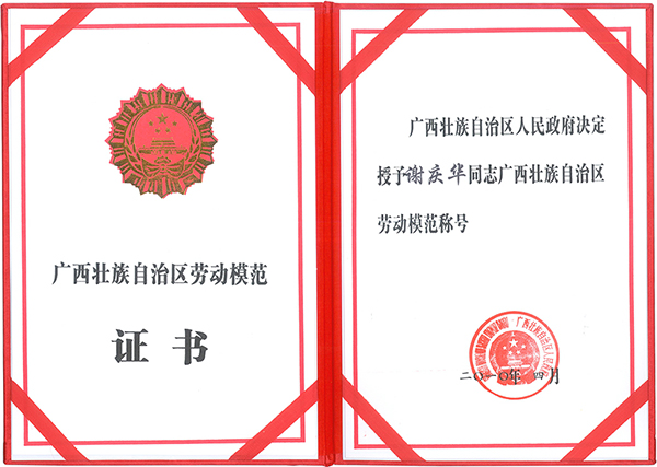 謝慶華總經(jīng)理榮獲“廣西壯族自治區(qū)勞動(dòng)模范”稱號