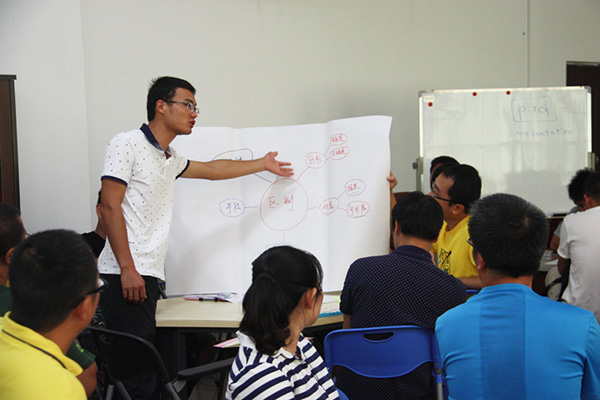 體驗課由中國地質(zhì)大學(xué)博士、子謙國際創(chuàng)業(yè)教育學(xué)院首席專家、河北地質(zhì)大學(xué)創(chuàng)新創(chuàng)業(yè)教育學(xué)院執(zhí)行院長與教學(xué)總監(jiān)朱燕空作為主講。體驗課以新常態(tài)下雙創(chuàng)發(fā)展及市場拓展為背景,就創(chuàng)業(yè)思維內(nèi)涵、體驗創(chuàng)業(yè)思維之旅、創(chuàng)業(yè)思維與管理思維對比,與學(xué)員們探討交流雙創(chuàng)發(fā)展之路,布置各小組“制造未來”任務(wù),設(shè)想了創(chuàng)業(yè)之路所遇到各種機遇與困阻。朱院長表示,創(chuàng)業(yè)成長期,大部分創(chuàng)業(yè)青年不缺乏目標(biāo)和想法,著實選擇一個有效的路徑去實現(xiàn),路徑有很多,每條路徑都代表著一種可能性,并且充滿了不確定性,關(guān)鍵在于如何找到有效的路徑,需要我們?nèi)バ袆印⒎此己驼{(diào)整;而不是過多的詳細規(guī)劃,注重逐步執(zhí)行。面臨不確定性,朱院長結(jié)合自身創(chuàng)業(yè)經(jīng)驗,與學(xué)員們探討分享創(chuàng)業(yè)新思維與企業(yè)管理模式,并運用了大量案例對市場拓展做指導(dǎo)。課堂最后,朱院長與學(xué)員逐個交流創(chuàng)業(yè)相關(guān)熱門話題。
