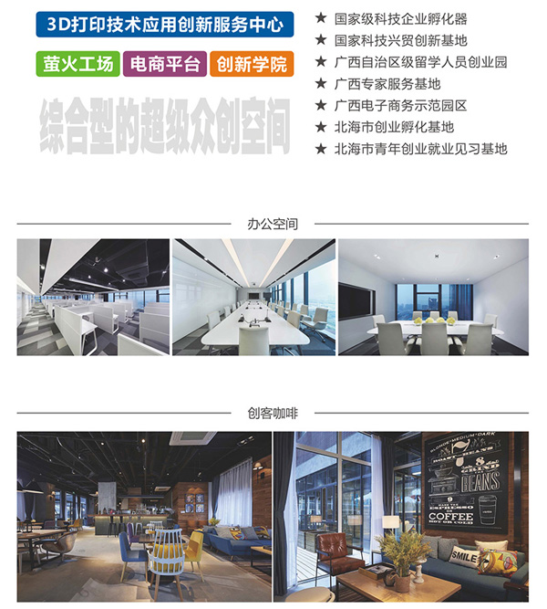 中電北海產(chǎn)業(yè)園眾創(chuàng)空間規(guī)劃面積5000平方米,重點圍繞智慧城市、智能硬件、物聯(lián)網(wǎng)、移動互聯(lián)網(wǎng)、大數(shù)據(jù)、電子商務(wù)等重點新型產(chǎn)業(yè)領(lǐng)域,采取互聯(lián)網(wǎng)+現(xiàn)場服務(wù)的模式,整合上下游資源,為入住企業(yè)和創(chuàng)業(yè)者提供政策咨詢、科研支持、人才引進(jìn)、電商培訓(xùn)、創(chuàng)業(yè)指導(dǎo)、融資對接等服務(wù),形成支持創(chuàng)新創(chuàng)業(yè)的生態(tài)圈。中電北海產(chǎn)業(yè)園眾創(chuàng)空間通過整合各方資源,已經(jīng)集成一批面向區(qū)域主導(dǎo)產(chǎn)業(yè)的前沿技術(shù),整合了戰(zhàn)略投資基金、天使基金和社會投資相結(jié)合的創(chuàng)新創(chuàng)業(yè)投資基金,建立了涵蓋科學(xué)家、創(chuàng)業(yè)企業(yè)家和企業(yè)運營管理專家的創(chuàng)業(yè)導(dǎo)師團隊,聚集電商平臺、3D打印技術(shù)應(yīng)用創(chuàng)新服務(wù)中心、創(chuàng)新學(xué)院、螢火工場實驗室等一體化服務(wù)機構(gòu)構(gòu)成綜合型的超級眾創(chuàng)空間。
