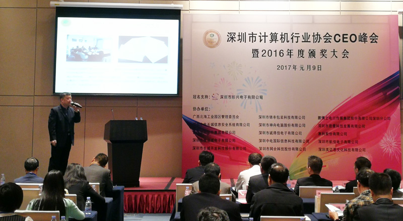 2017年1月9日,深圳市計(jì)算機(jī)行業(yè)協(xié)會CEO峰會暨2016年度頒獎大會隆重召開,作為北海電子信息產(chǎn)業(yè)的基礎(chǔ)核心、優(yōu)秀產(chǎn)業(yè)園區(qū)運(yùn)營商的中國電子北海產(chǎn)業(yè)園發(fā)展有限公司當(dāng)選深圳市計(jì)算機(jī)行業(yè)協(xié)會副會長單位,索耀宗總經(jīng)理當(dāng)選為協(xié)會第九屆理事會副會長。