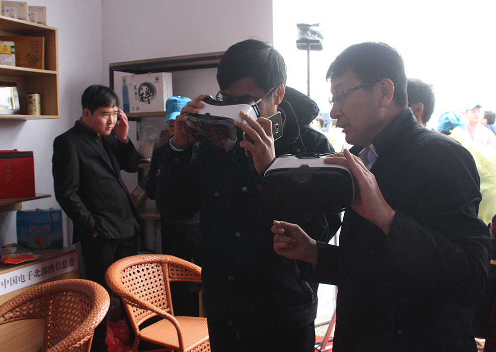電商谷展區(qū)熱鬧非凡(與會嘉賓在電商谷體驗京東北海館購物)